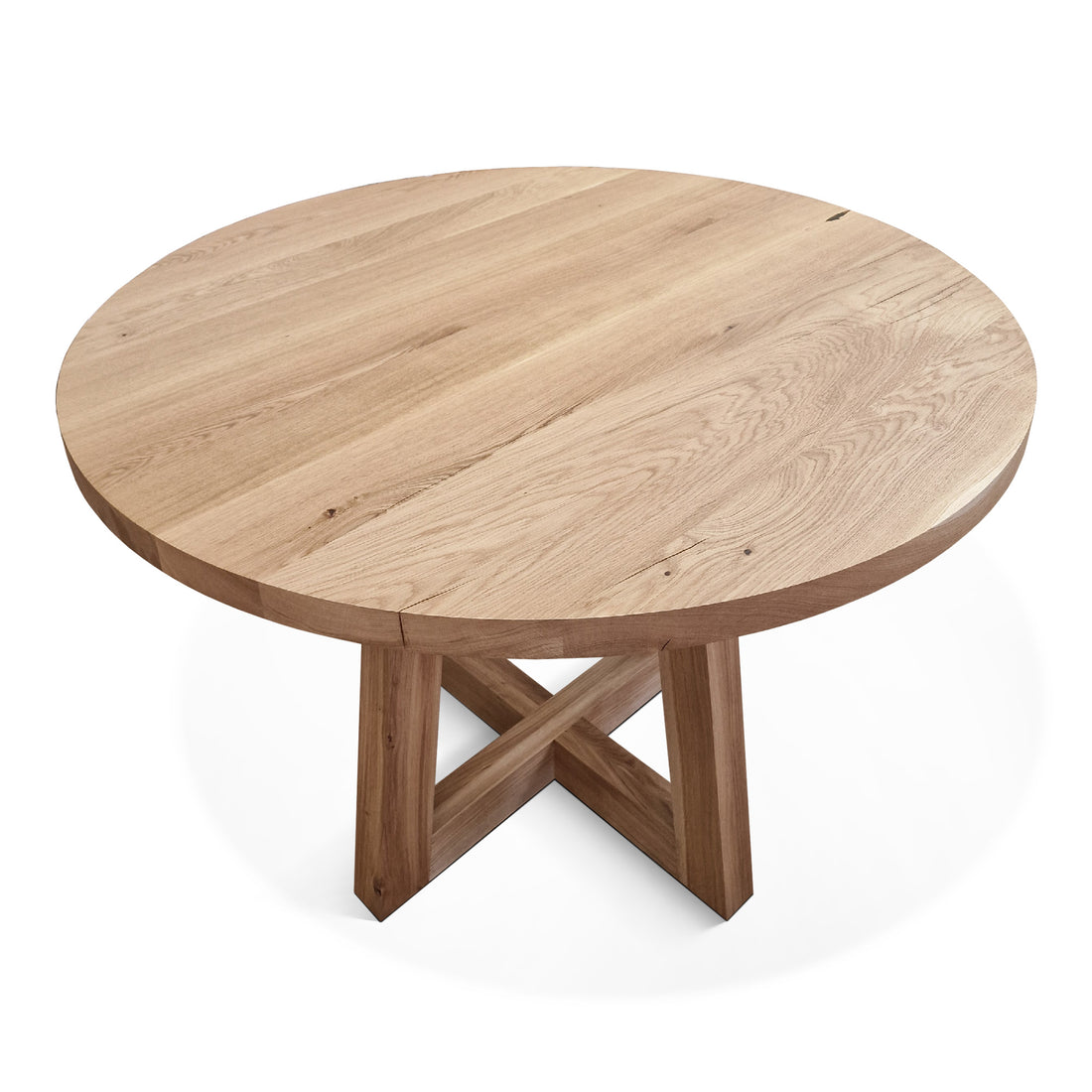 Einführung unseres handgefertigten runden Eichen-Esstisches - eine atemberaubende Ergänzung für jedes Zuhause. Aus Massivholz gefertigt,...