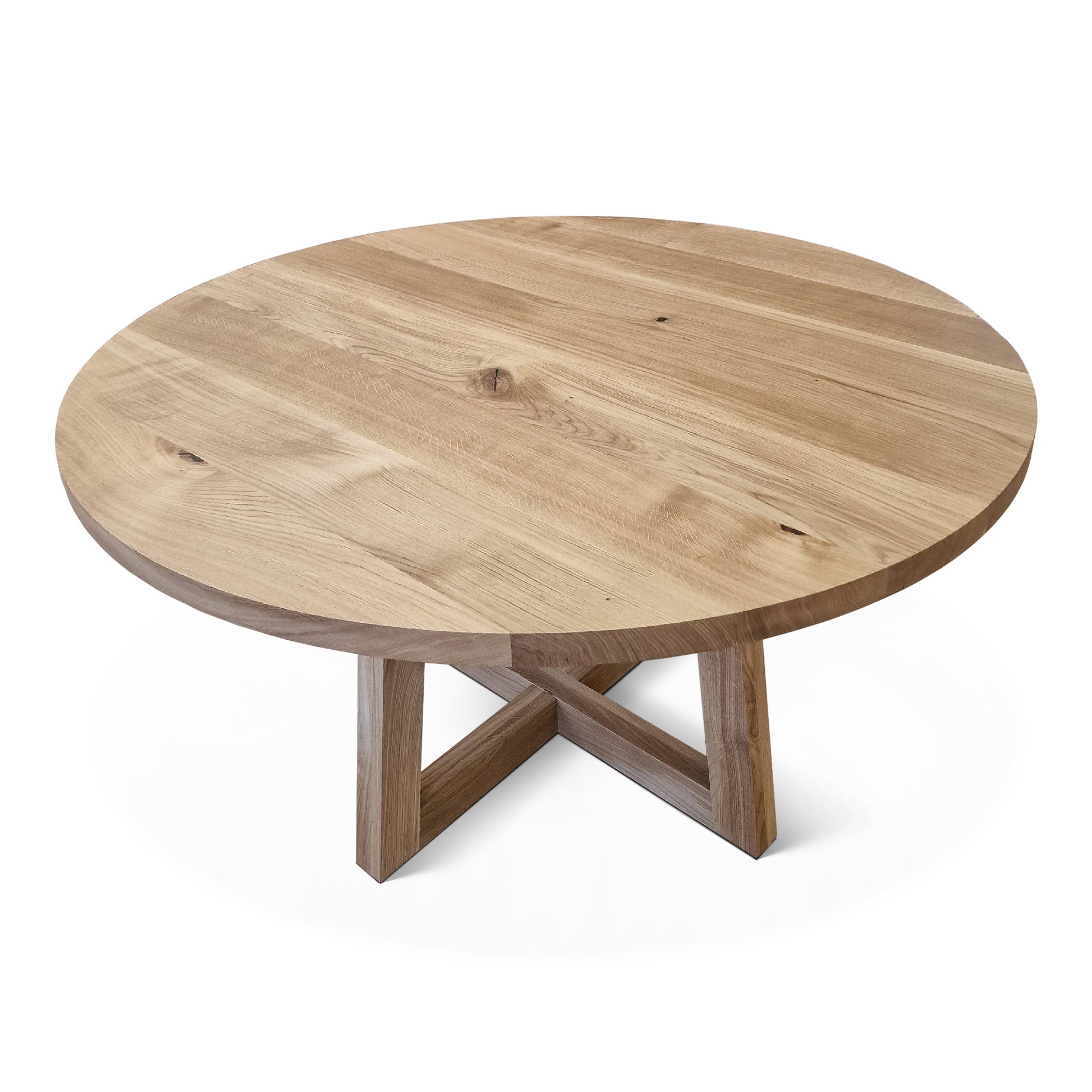 Handcrafted Tulip Round Oak Dining Table – Solid oak elegance meets functionality. Available in 4 sizes (Ø120–180 cm) with 40 mm thick planks, FSC-certified wood, and natural Rubio Monocoat finish. Perfect for any modern dining space